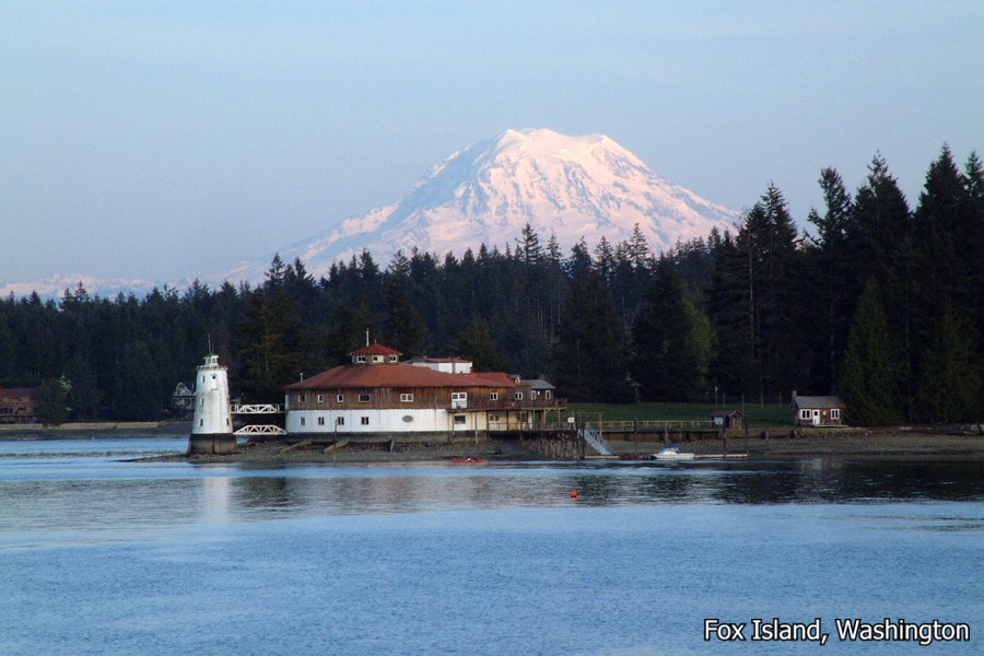 Fox Island, Washington, overlooking the Tanglewood Island lighthouse, and Mt